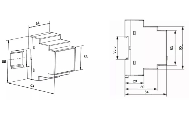 Dimension(L * W * H) 85*74*54mm Installation DIN 35mm |
