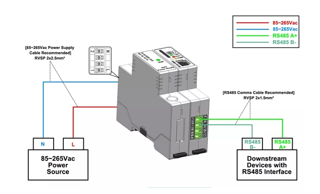 ● Soutien: jusqu'à 20 ~ 25 dispositifs d'Acrel avec RS485 (MODBUS-RTU)